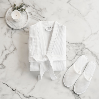 Emerald Kimono Style Hotel Robes, available in bulk for your convenience. Crafted from a luxurious blend of 70% cotton and 30% polyester, these wholesale robes feature a delightful diamond knit with piping, exuding both style and comfort.Complete the look with matching Emerald Belt, made from the same high-quality cotton and polyester blend.Whether for your hotel or spa, these wholesale bathrobes are designed to impress, adding a touch of luxury to your guests' experience.Make a lasting impression on your guests with our premium robes in bulk.